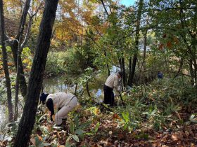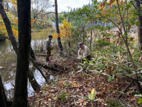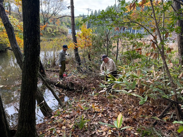 作業内容:①池畔周遊路の雑木伐採 ②冬支度