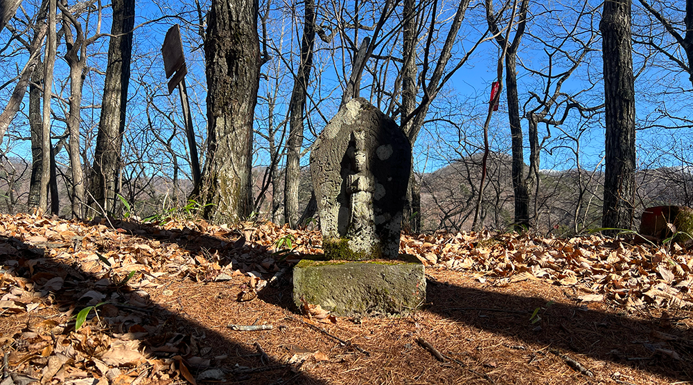ただ、古道は植林帯ではなく広葉落葉樹林の中を通っており落ち葉で苦労する反面、秋冬は空が大きく広がりとても気持ちの良い山道を歩くことができました。