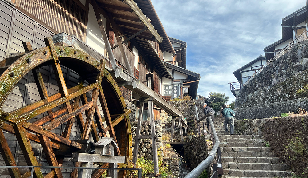 しっかりした道標があちこちに立ち、トイレも2時間ごとくらいにあるが、与川道は終点の南木曽駅近くのほかは、店も自販機もない。11月23日は、妻籠宿でお祭りが行われるために、あえて反対のコース取りをした。