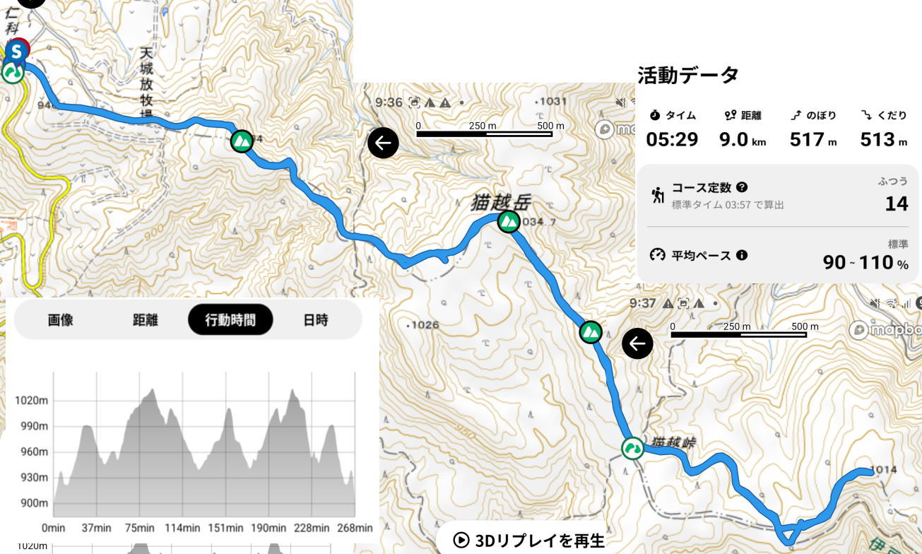 9:00 仁科峠~9:30後藤山~10:30 猫越岳~11:00 猫越峠~