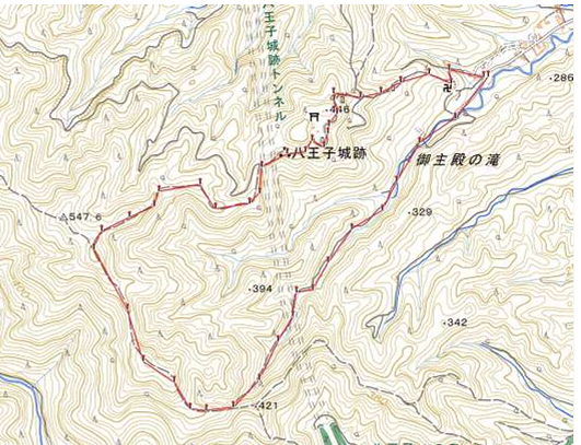 ルート:登山口11:00―ー御主殿の滝――富士見平―ー城跡――登山口14:30