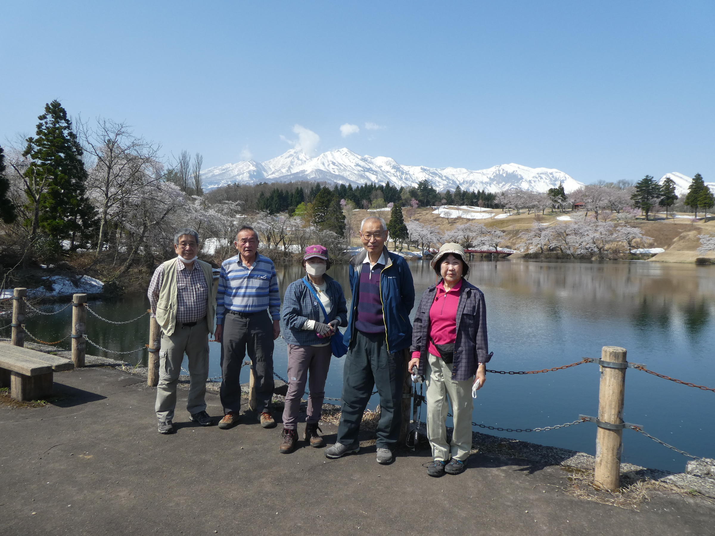 ここを出たら丁度昼食時間となり、小笠原君の案内で昼食を予約してあった蕎麦処『松の栄』でゆっくりと蕎麦会席を楽しむ( 喉も乾いているので当然のようにアルコール類も楽しむ)。昼食後は長岡『雪国植物園』でゆっくりとシラネアオイやイカリ草の群落、オオイワカガミ、ショウジョウバカマ、シュンラン、イワウチワ等の春の花々をアップダウンを続けながら広い園内をゆっくりと2 時間程楽しんで、明日行く予定で有った松が峰サンシャインランドにある今が満開状態の桜並木を眺めながら宿のユアーズ・インに到着したのでした。