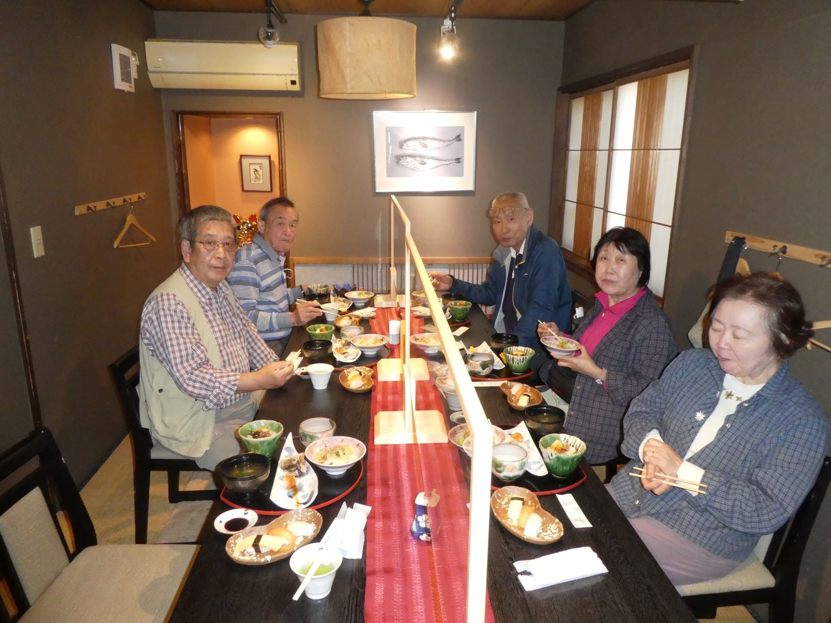 此処をゆっくりと見学後新井に行って昼飯だ。その後高田の旧市街地にある「町家交流館高田小町」や雪対策としての雁木の通りや、1911 年に建造され、残存する映画館では日本最古と言われている『高田世界館』をゆっくりと見学して、最後に旧師団長官官舎を見学しながら美味しい菓子とお茶をゆっくりと楽しんで、帰路いつものように新井の路の駅により、吉永君が此処の塩辛が一番旨いのだと言って保冷容器に入れてたっぷりと買って、ユアーズ・インに帰ってきました。宿に帰ると当初参加予定で有ったのだが、先週健康診断で何か異常が出てしまい、19 日に再検査の為参加できなくなってしまった石原さん御夫妻も到着されており、今回参加予定の全員が顔を揃える。