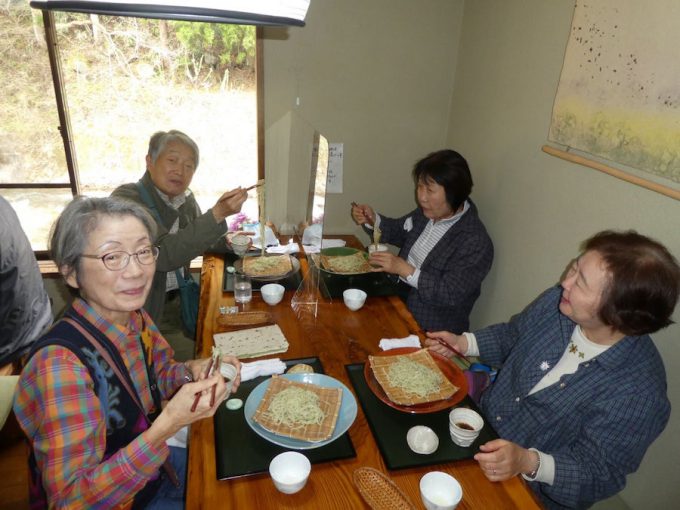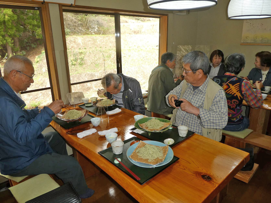 その後は新装開所した『いもり池のビジターセンター』に立ち寄り妙高地区の歴史や成り立ちなどを勉強しました。そろそろ時間となりお腹もすいてきた。昨晩遅く迄小笠原さんが調べて、飯山市の木島平にある蕎麦処『健生庵 山愚』が美味い蕎麦を食べさせるようだと言って『いもり池のビジターセンター』より一時間近く運転して『健生庵 山愚』へ連れて行ってくれたのでした。この店は出来たら予約してきてから来店して欲しいのだが、お客さんたちの人数分くらいはまだ残っているので大丈夫ですよと言われて入店することが出来ました。
