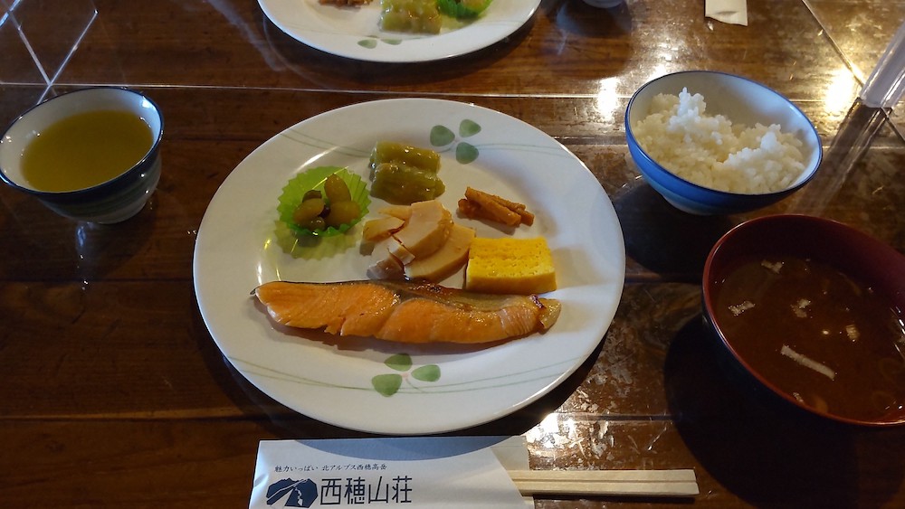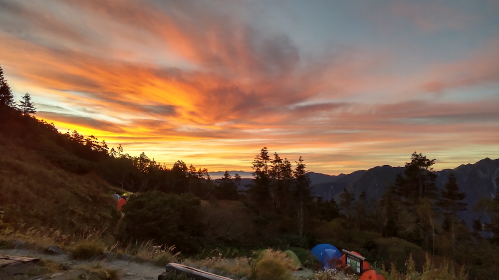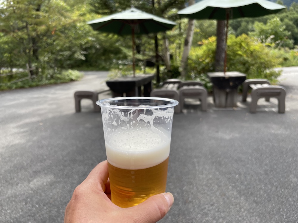 北峰を下り始めておよそ5 時間、よれよれになりながら何とかコースタイム通りの15 時30分に西穂高山荘に到着した。時間的に余裕もあるのでこのまま宿泊をキャンセルして上高地の山研まで下山も考えられるが、当日のそれも突然のキャンセルは流石に山小屋に申し訳なく予約した通り泊まることにする。そうと決まれば生ビールで乾杯である。五臓六腑に染み渡る生ビールの泡は格別であった。