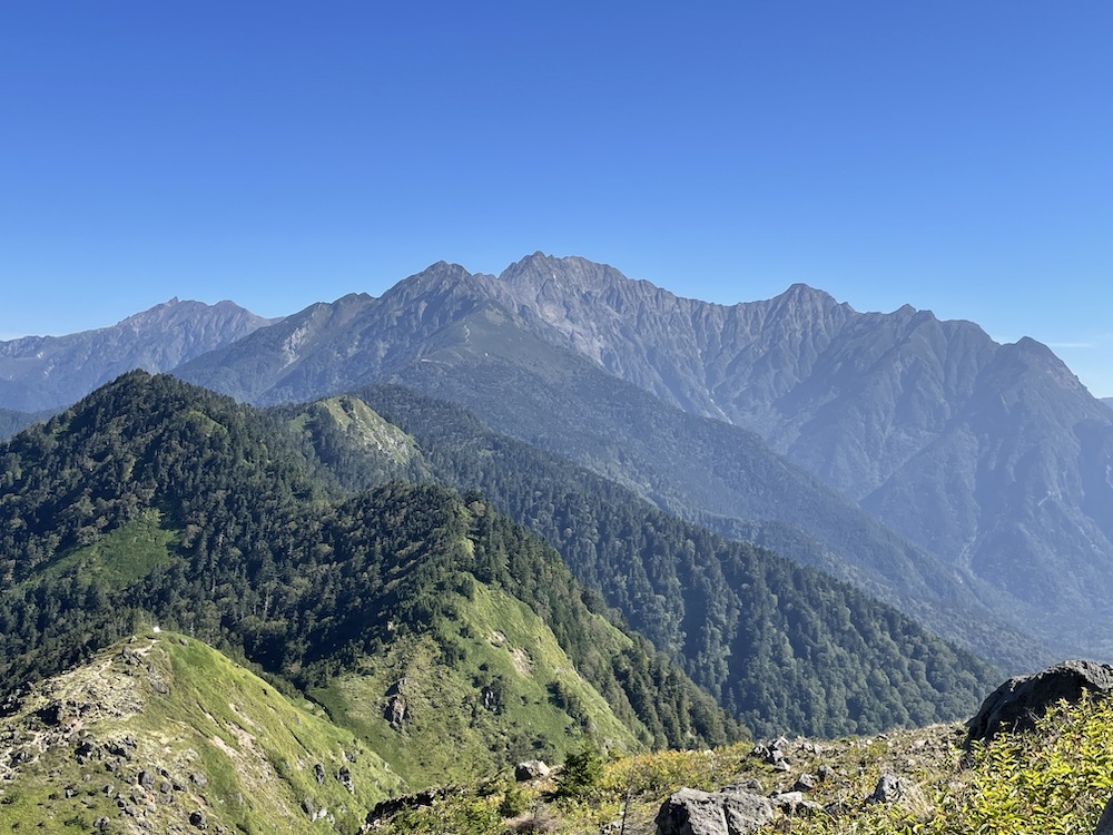一旦焼岳小屋まで戻り西穂高に向かって北に延びている稜線を行くのだが、西穂高山荘まで小ピークが5つ程連なっておりアップダウンの繰り返しで非常に消耗させられた。流石に杉田さんは私より10 歳程若く足が速い。回復力の差を痛感させられる。