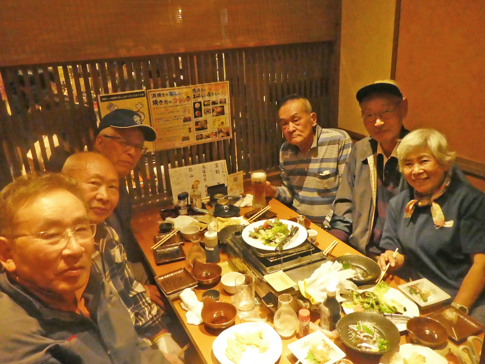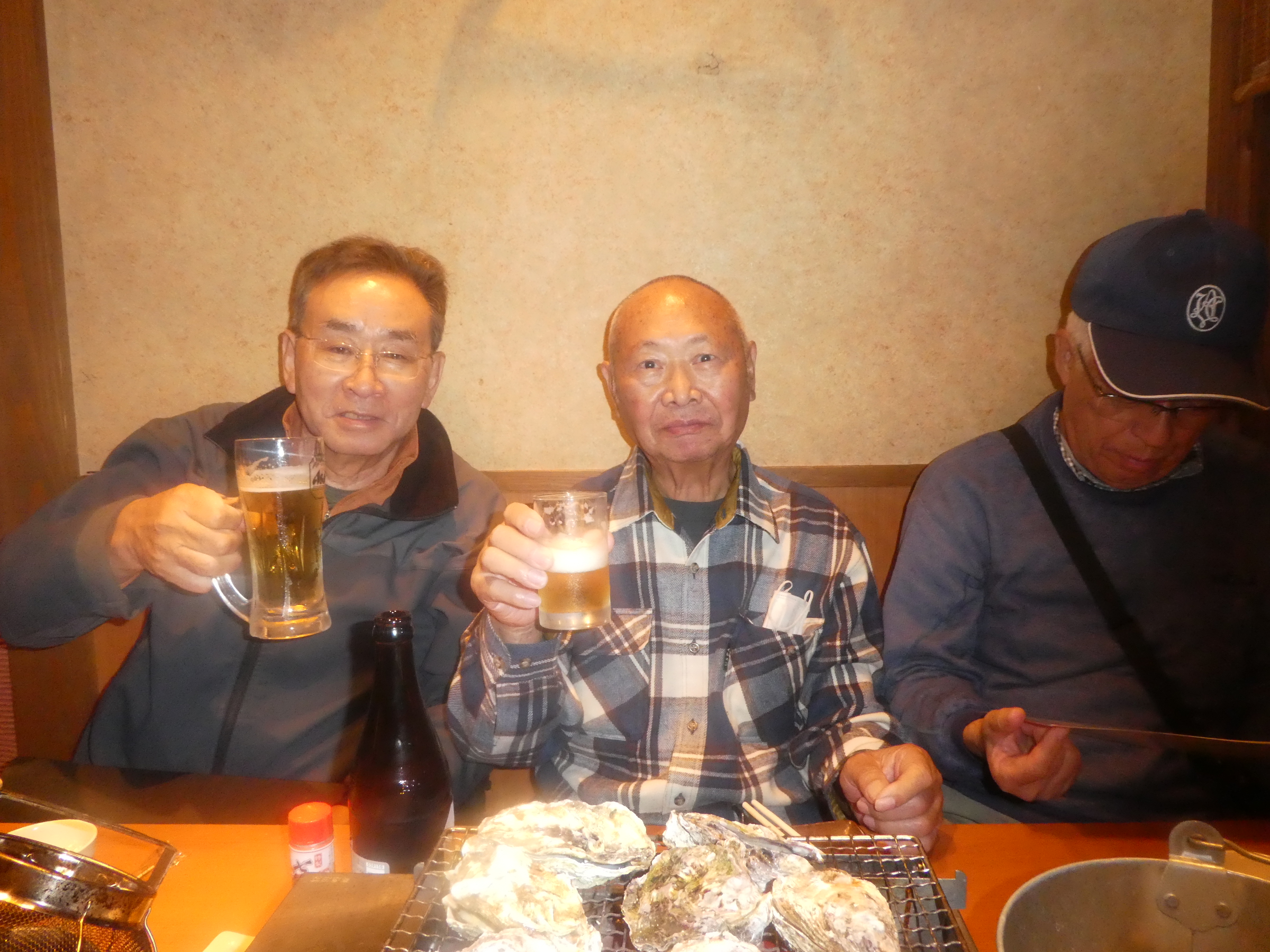 帰路も、浜田山の「瑞穂インター」より高速に入り、浜田道、中国道、広島道、から広島西バイパス経由で、広島中心街にある『法華クラブ』に投宿した。宿代は4 割引で、またも3.000円の広島県のクーポンも交付された。各々、入浴後、予約していた繁華街本通りの居酒屋「豊丸水産」で広島名産の焼牡蠣、烝牡蠣、生牡蠣等を堪能し、クーポン3.000 円を含み一人6.000以上を費やし、全員心いくまで飲み、食べ呆けた。