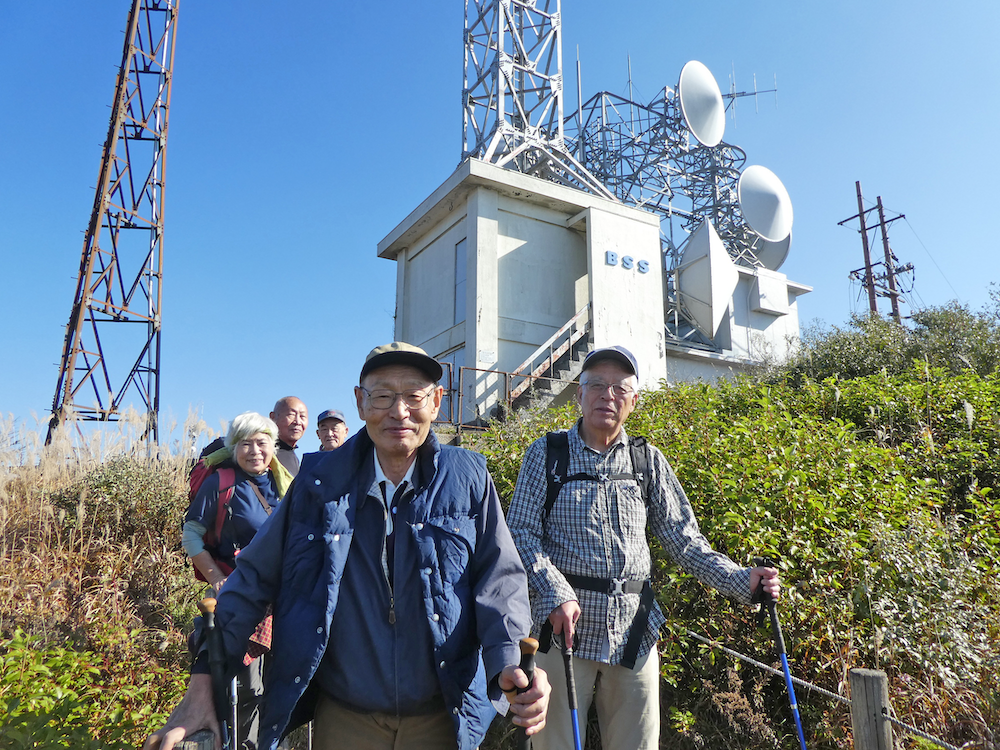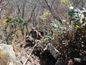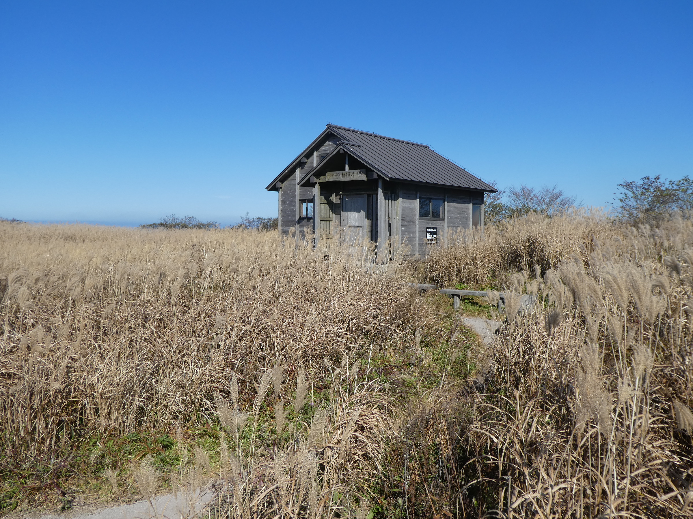 標高が1.000m 程度のため、少々舐めていたが、登り下りが多い上、ヤセ尾根、岩場があったりし、てなかなか登り甲斐のあるルートであった。快晴の頂上からは, 北東方に出雲平野と弓状の日本海の浜、当方に雪化粧をしたらしい「大山」がうっすらと望め、南方には累々とした中国山地の山並みが横たわっていた。主峰からは北側の「北の原」へ下り、女三瓶迄は登ってから、東の原に下った高橋君が車を回送してくれていた「姫逃池」の駐車場に下山した。