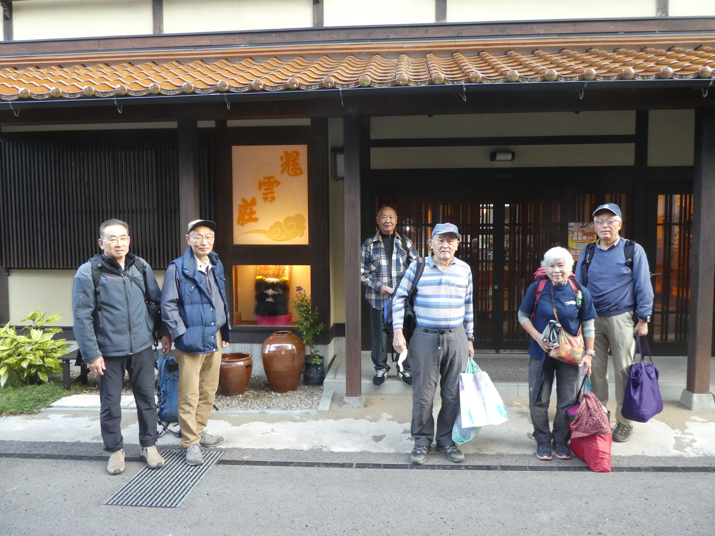 昔の湯治場の面影が残る狭隘な道路沿いの旅館街を辿り、今日の宿「輝雲荘」に入った。9月頃インターネットで捜し予約した際、料金が全体的として高目であった為、その理由を聞いて見たところ、11 月第1 週から第2 週にかけては出雲の国では『神有月』と呼ばれており、八百万の神々が出雲の大社( おおやしろ) に集まられて会議を開く季節の為、旅のシーズンとなり宿泊代も高くなるとの事であった、因みに出雲以外では11 月を『神無月』という。