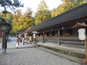 下山後は、昨日旅館で貰ったクーポンを利用するため、小笠原さんが携帯で何とか探し当てた出雲市の回転寿司『藏ずし』へ急行し、一皿110 円程度の寿司を食べまくり、生ビールも楽しんだ。それでも夕暮れまではかなりの時間があった為、出雲大社( いずものおおやしろ) を訪れ,二礼四拍一礼の作法に従い参拝をした.天孫族に対抗した出雲族の代表者である大国主命をお祭りする【やしろ】であり流石に規模も大きく注連縄の巨大さにも驚き、周囲の凛とした空気の中の佇まいに圧倒されつつ、神話の時代に思いを馳せ、きようの宿「武志山荘」に向かった。