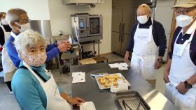 その後、作ったおやきを油で少し狐色に揚げたのち、高温のオーブンで焼き上げて貰う。焼きあがるまでの時間に工場でのおやき製造工程を見学する。焼きあがったおやきはカフェでコーヒーとともにいただいた。 生涯で始めていただくおやきの味は特別変わったものとも思わなかったが、信州の人にとってはそれこそ「幼い時から食べている」とすれば懐かしく、おやきの季節には食べたいお菓子なのだろうと思った。