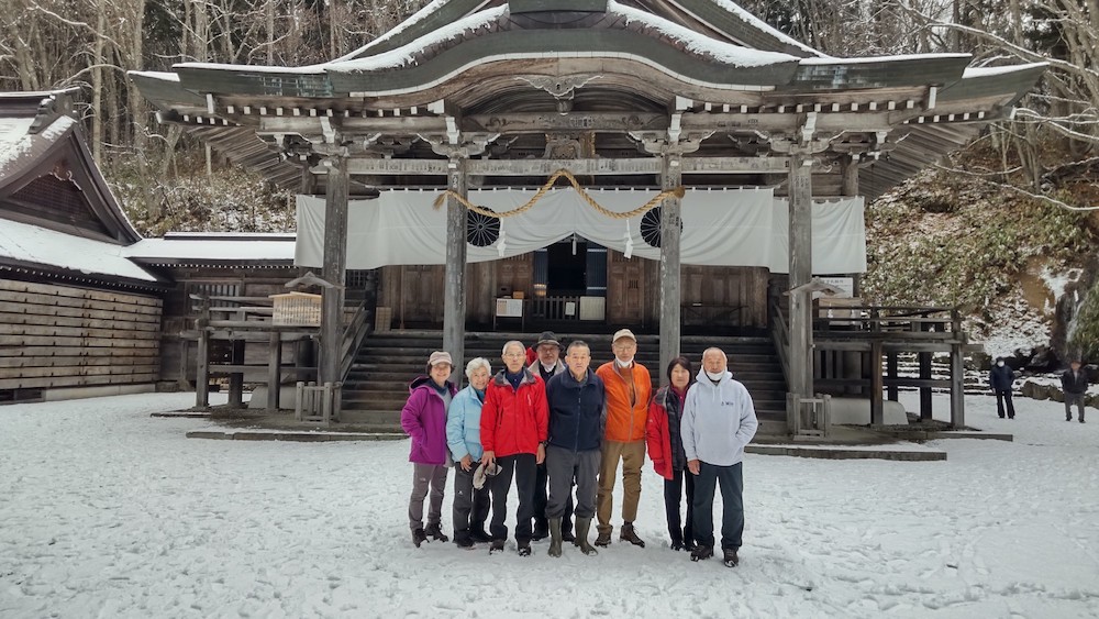 その後、戸隠神社中社にて、今年の健康に感謝し、来るべく新年の山行ならびにスキー行の安全を祈願する。参拝後、徳善院蕎麦宿坊「極意」にて「お楽しみ蕎麦セット」を食する。セットの内容はかけそば2 種、テンプラ、なめこのあえ物、高野豆腐と小豆ご飯と盛り沢山であった。昼食後、長野駅にて所用の有る吉永さん竹内さんそれと自分は帰宅の途に就いた。今回も、小笠原さんには送迎、「おやき作り体験」、昼食セットまでさまざまのことを大変お世話になりありがとうございました。