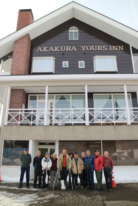 今日のゲレンデコンデションはずっと曇りで日差しがなく、雪が堅いので、結構エッジが引っ掛かり、雪面の状況をしっかり把握する必要があったが、曇っていたので雪面の凹凸がはっきりしなくて雪面の状態に苦労を強いられた。お昼は山田さんおすすめのレストラン「サンアントン」でゆっくりする。午後も同じところを滑っていたが早めにレストランで休憩する。定刻の時間にみんな揃って駐車場に戻り、小笠原さんの迎えの車で赤倉ユアーズ・インへ戻る。「雪を楽しむ会」の最後の泊りとなり、夕食時はユアーズ・インさんの心づくしの料理に舌鼓を打ち、美味しい酒をいただきながら次の計画等の話に花を咲かせ今回の反省をする。山研の山田さんが8 時過ぎに見え、スキーの話を一緒にお酒を飲む。今年の夏には上高地の山研へ是非来てほしいとのことでした。