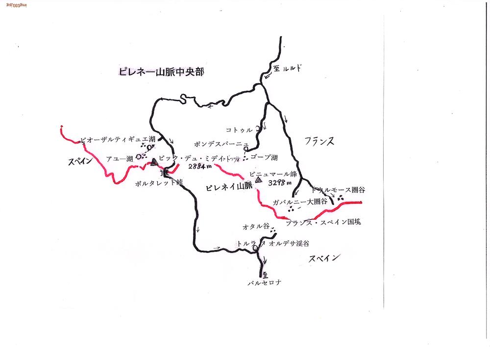 南フランスとスペインの国境に連なるピレネーの山々の花と新緑を求めて登るアルパインツ アー( 株) が企画するフラワーハイキングにJAPA 会員の金氏と参加した。迫力ある山岳景観に 初夏の高山植物群は、スイスやチロルなどの山より南にあり、他のヨーロッパアルプスには見 られない出逢いに感激した。今回の山旅は尾根や稜線を縦走するのではなく、圏谷やそれに連 なる広い草原を歩き、山麓の村の古い街道宿場町のホテルに泊るゆったりしたツアーとなった。 主要のコースは小さい公国アンドラを出発点に、ピレネー山脈の北側( 南フランス) の巡り、トゥ ルモース圏谷、ガバルニ―圏谷、ビニュマール峰の北壁を眺めるコーブ湖、ピック・デュ・ミディ 北面のアユー湖を登る。ポルタレット峠からスペイン領に入りオルタ谷の大草原巡り、バルセ ロナに下った。