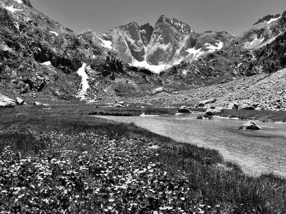コトゥルの町かポンデスパーニュでチェアリフトに乗り、さらに登山道を登ると高山植物が多 いゴーブ湖、さらに緩やかな谷を登るとピレネー国立公園の最高峰ビニュマール峰(3298m) の 展望テラスに出る。イワタバコやアルペンローゼ、リンドウ、オダマキ、キンポウゲ科の花な ど見事なお花畑が展開する。