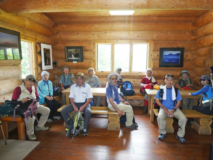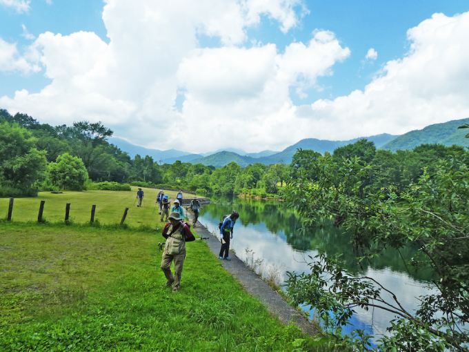 笹ヶ峰グリーンハウスを抜け、自然の力強さを感じながら、それぞれの木の特長について小笠原さんからレクチャーを受けながら、9㎞、4 時間のコースをゆっくりと歩む。白樺、ダケカンバ、ブナなどたくさんの木々が繁っている。枝の折れたところが黒く「へ」の字を描いているのが白樺。ダケカンバは赤茶色がかっている。ブナの樹皮は滑らかな灰白色だがまだらになる。小笠原さんから何度も見分け方の説明を受けたので、何とか色々な樹々の名前を覚えることができた。樹々の中には鳥のさえずりがコダマしており、爽やかな香りが漂い、このような自然の美しさを堪能できる散策は気分が良い。