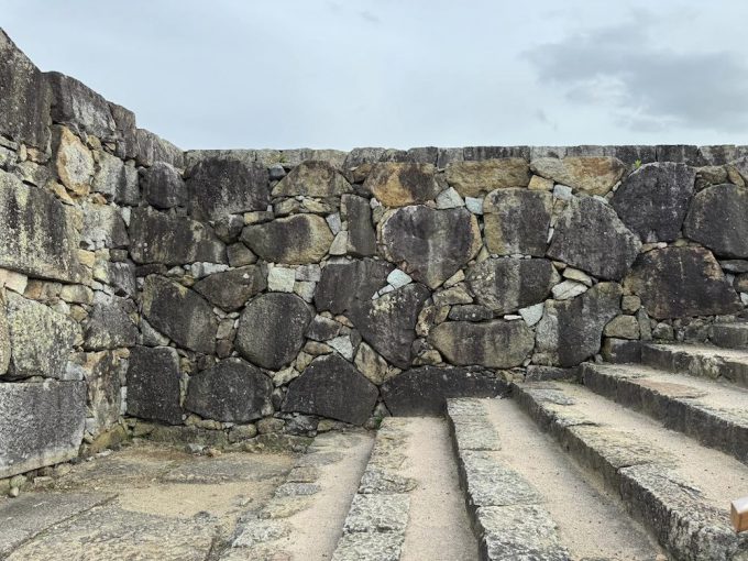 津山城二の丸への石段と備中櫓と二の丸から仰ぐ備中櫓。