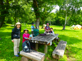 竹内晴美ファミリーと九州の遠方から参加された関口氏は、このトレッキングには参加されず朝食後に分かれました。つくも会の方達はこのトレッキングに参加した後、妙高高原駅より帰路につきました。