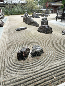 初日の今日はJR 和歌山駅を12:30 に出発して、2時過ぎに高野山金剛峯寺の駐車場に着いた途端、大粒の霰がバラバラッと降り出し、気温も下がって3 度とか。しばしの白い景色を見ることになりました。