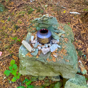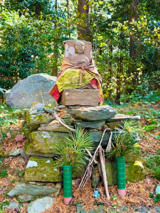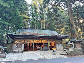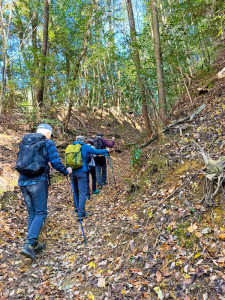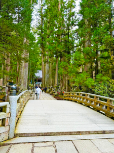 6:45 から護摩堂で朝のお勤めとお焼香、本堂の案内御本尊その他の説明、外国からの宿泊客のためにポケトーク活用してのお話は今時でした。引き続き朝食を頂き、宿坊出発8:30今日の活動は「高野山女人道巡り」かつて女人禁制のため女人堂が各所に計7 ヶ所あったそうで、そこを巡りながらの山歩き。今回は全体の内約7 キロ4 時間の行程でした。
