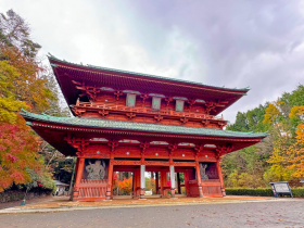 【重要文化財】金剛峯寺前駐車場より境内に入って来るとき、最初にくぐられる門を正門といいます。文久2 年(1862 年)再建とされますが、延宝8 年(1680 年)に落慶した「青巌寺上門」の可能性も挙げられています。 右のほうを見ますと小さな入り口があります。このくぐり戸は一般の僧侶がもっぱら使用しています。昔は この門を正面から出入りできるのは天皇・皇族、高野山の重職だけでした。一般参拝の方はあ まり関係のない話ですが、高野山では門の出入り一つでも、厳しいルールがあるようです。