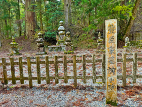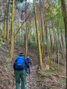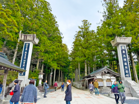 朝のうちは陽がさしていたのですが、天気は曇りになり、気温も低く4~5 度程度か、風も冷たくて、昼食は風の少ない物陰でパパッと済ませ、ろくろ峠〜円通律寺〜大峰口女人堂跡〜弥勒峠〜奥の院駐車場へと4 時間余りで予定通りにゴール。その後奥の院と壇上伽藍にお参りして、2 日目終了です。
