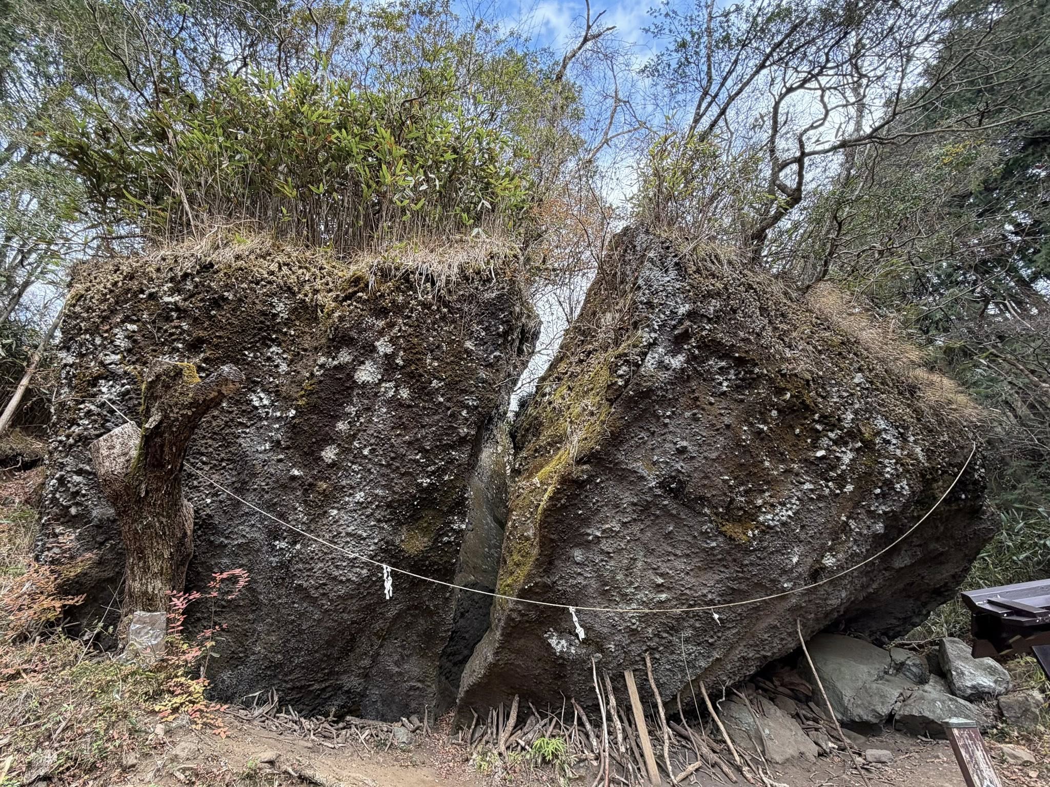 | 背後にあるはずの富士山は残念ながら雲の中でした | 金時宿り石 |