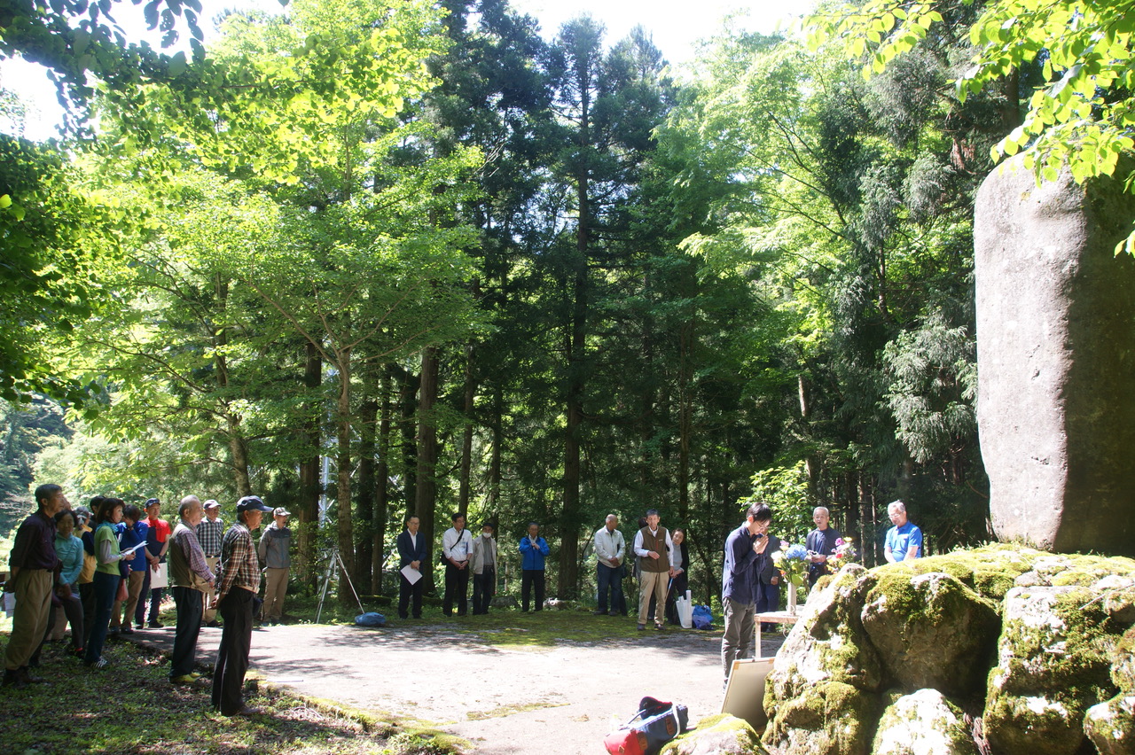 西沢渓谷を含む笛吹川源流域を世に広めた登山家、英文学者田部重治の功績を偲ぶ碑前祭(山梨市観光協会主催、後援山梨支部ほか)です。田部重治の著書『日本アルプスと秩父巡礼』が登山大衆化を促したと言われていることから、山梨支部は碑前祭開催を地元行政に働きかけてきました。