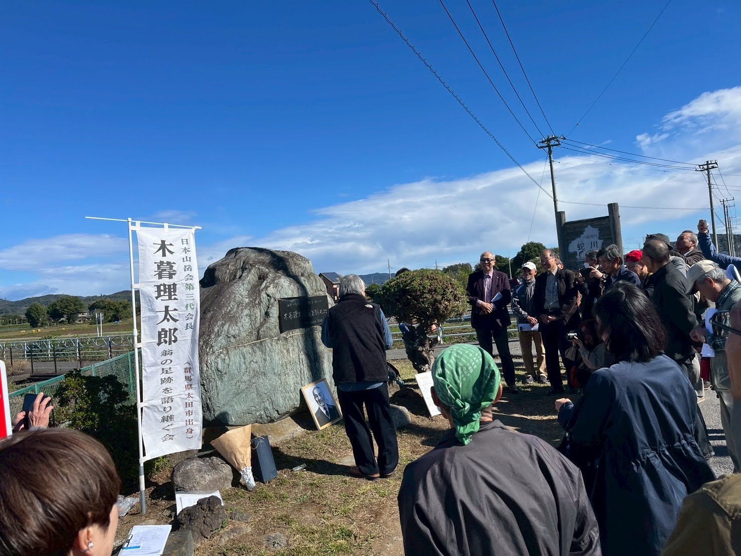 第3代会長の木暮理太郎は1873年(明治6年)年12月、現在の太田市寺井町に生まれました。同地にある顕彰碑の「生誕之地の碑」は1978年(昭和53年)年11月3日、地元の強戸山岳会によって建てられ、建碑以来、同山岳会員が木暮理太郎翁の遺徳を偲んできました。