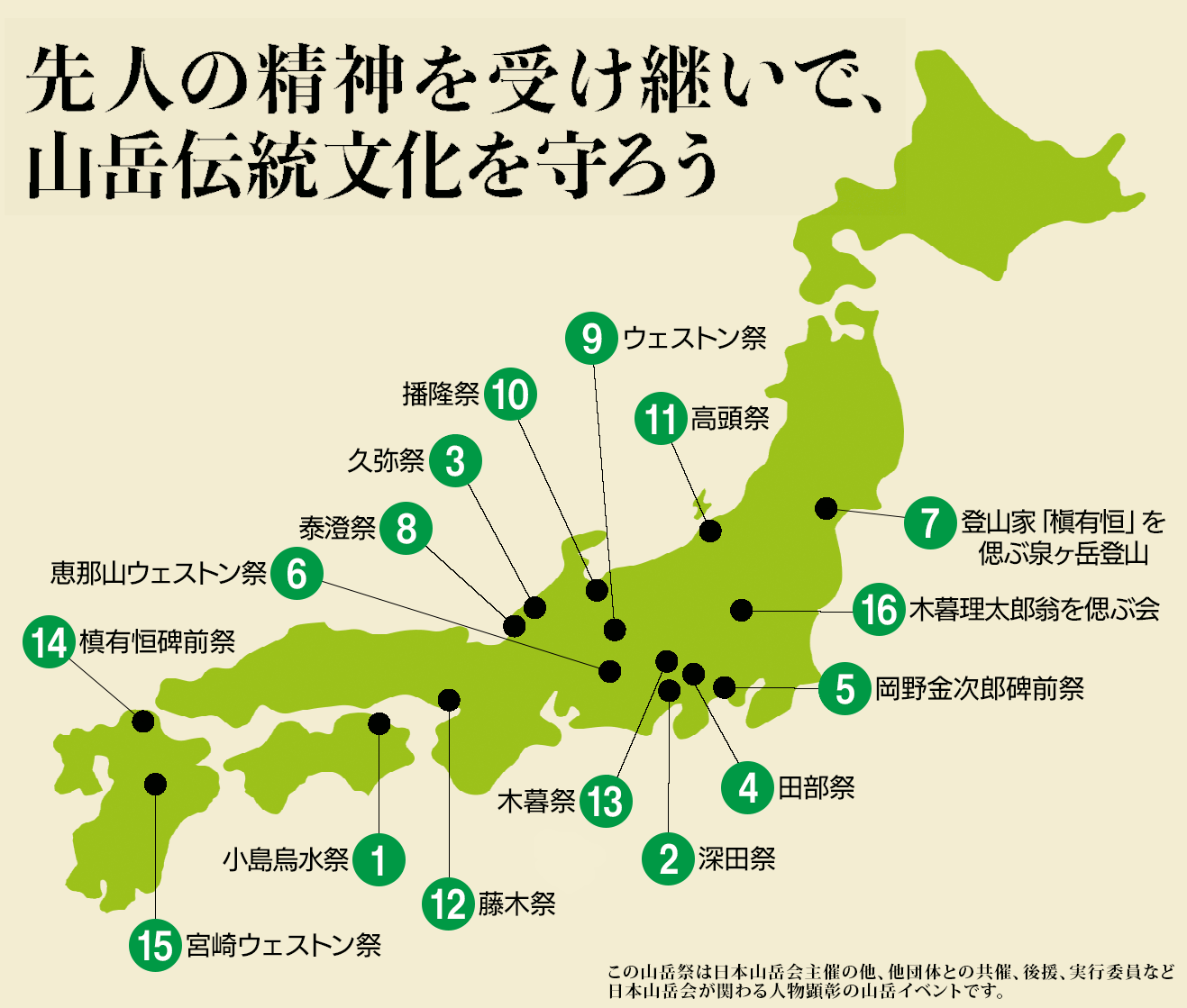 日本山岳会は2022年、そうした先人の精神と歴史を受け継ぎ、さまざまな山岳伝統文化を守り、絶やさず将来につなげるためプロジェクト「引き継がれる山岳祭」を立ち上げました。「継続」「支援」「広報」「交流」がキーワードでした。2025年には日本山岳会が創立120周年を迎え、改めて先人の人となりや活動、山岳祭の意義と歩みを振り返り、冊子「引き継ごう 山岳祭」に結実させました。