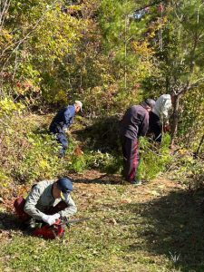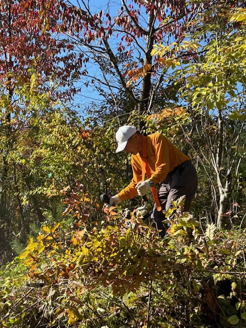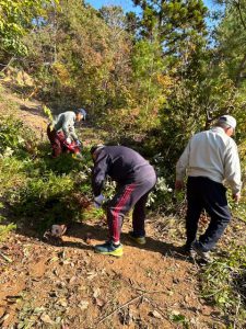 作業内容:①ヒガンバナの苗植え ②雑木の伐採と栗の苗植え