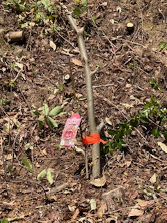 数年前に雑木を切って植えた栗の苗が育たず、また元の雑木と夏草に覆われていた遊歩道の横の山の上を再度切り開き、栗の木を5本植えた。うまく育てば里山は栗の名所になるかも。しかし、最近のアーバンベアーに占拠されることも想定内?ではある。山のブナの実が豊作であることを祈るのみ。