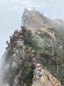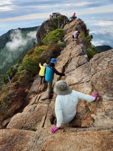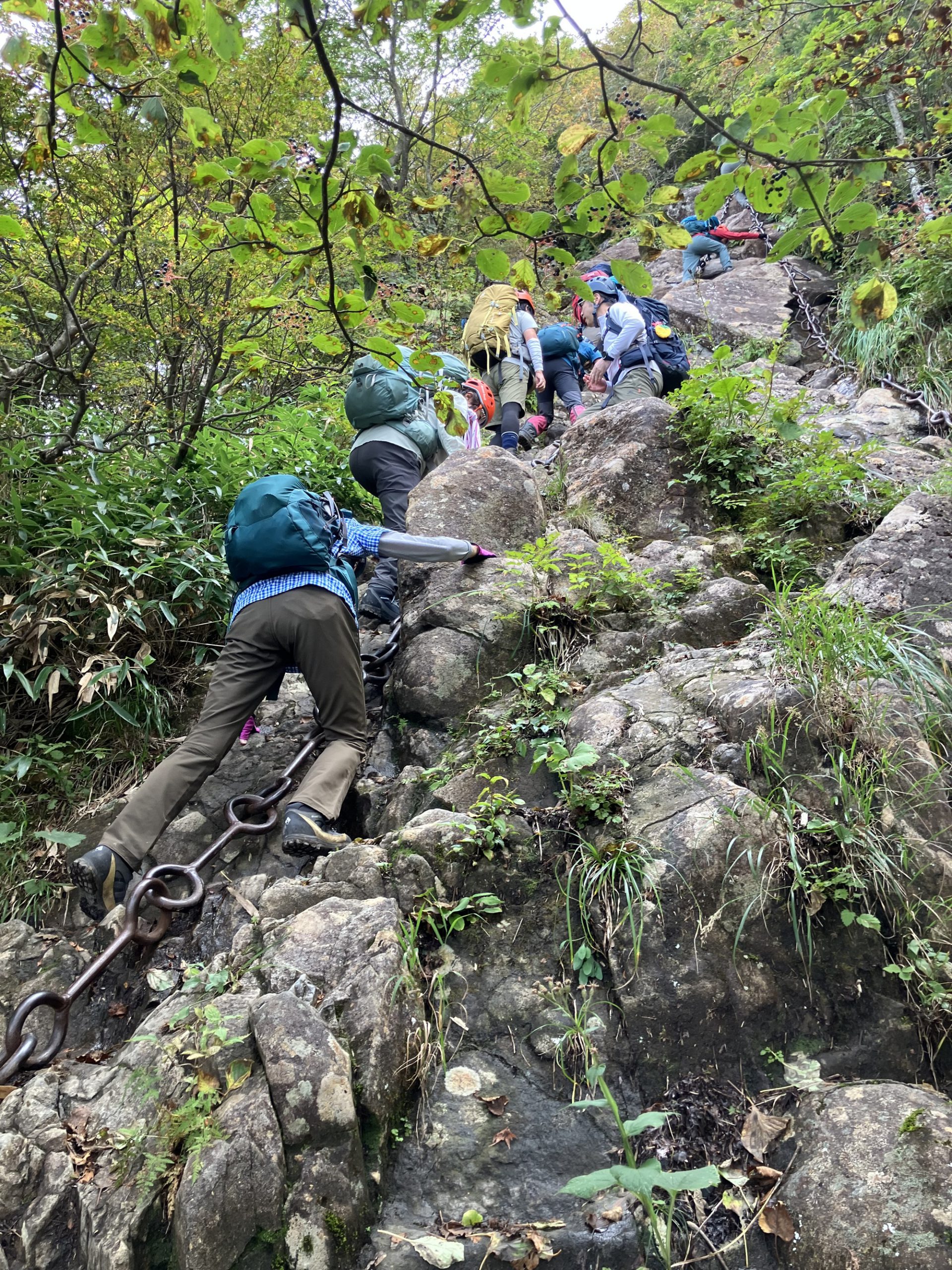 「がんばれ」「あと少し」という声で、お互いを支え合いながら登り切った鎖場。