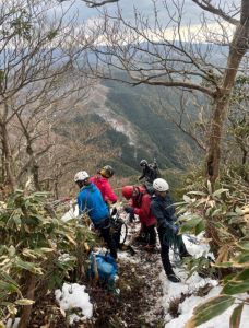 R8年1月10日(土) 雪山研修、山口県東部 莇ケ岳(アザミガタケ)、弟見山(オトトミヤマ)もともとは鳥取県伯耆大山での研修予定であったが、年明け早々に起きた島根県を震源地とする島根・鳥取の地震の影響も考慮し急遽山口県へ変更。