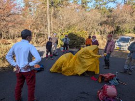 時間もあるので、ツエルトの設営と、使い方の研修を行う。