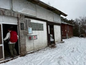 避難小屋 ここで食事 冬はとりわけありがたい