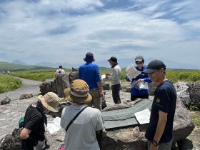 強清水で下車し、歩き出す準備や、スタッフミーティングの後、全体ミーティング(今日の内容、現在地確認、山座同定、ジオグラフィカの使い方、4班の班分け、等)をして、準備体操を行い、11:10にA班から出発。