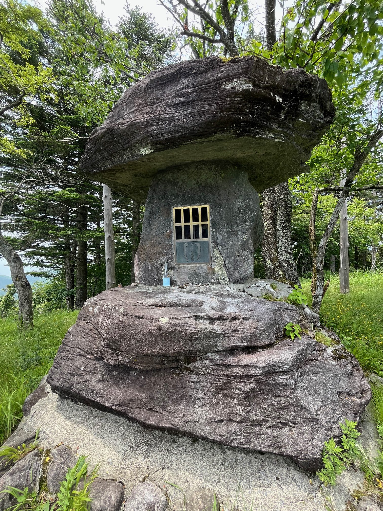 12:30薙鎌神社に到着。霧ヶ峰高原の守り神的な存在で、霧ヶ峰で唯一、諏訪湖と富士山を一望できる眺めの良い穴場スポット。