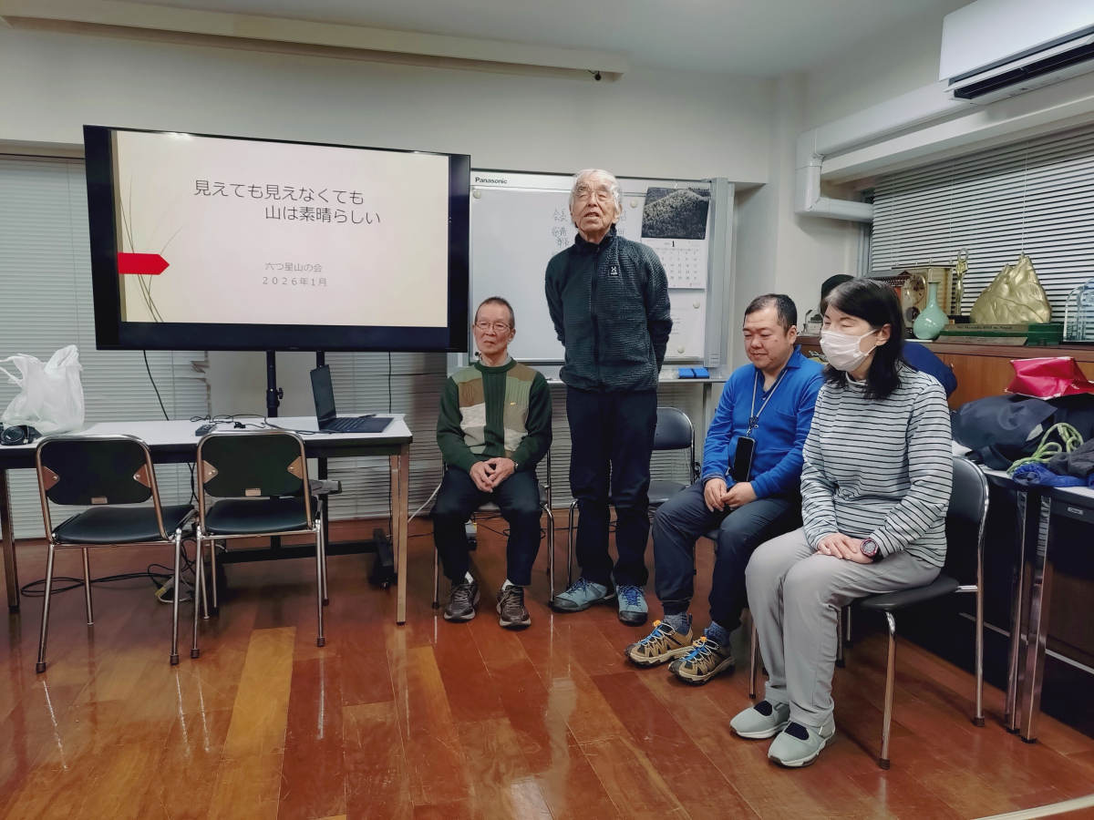 六つ星山の会より葛貫(つづらぬき)会長、柴田総務部長ほか清水山行部長、岡本総務部員の4名に来ていただき、セミナーを開催しました。