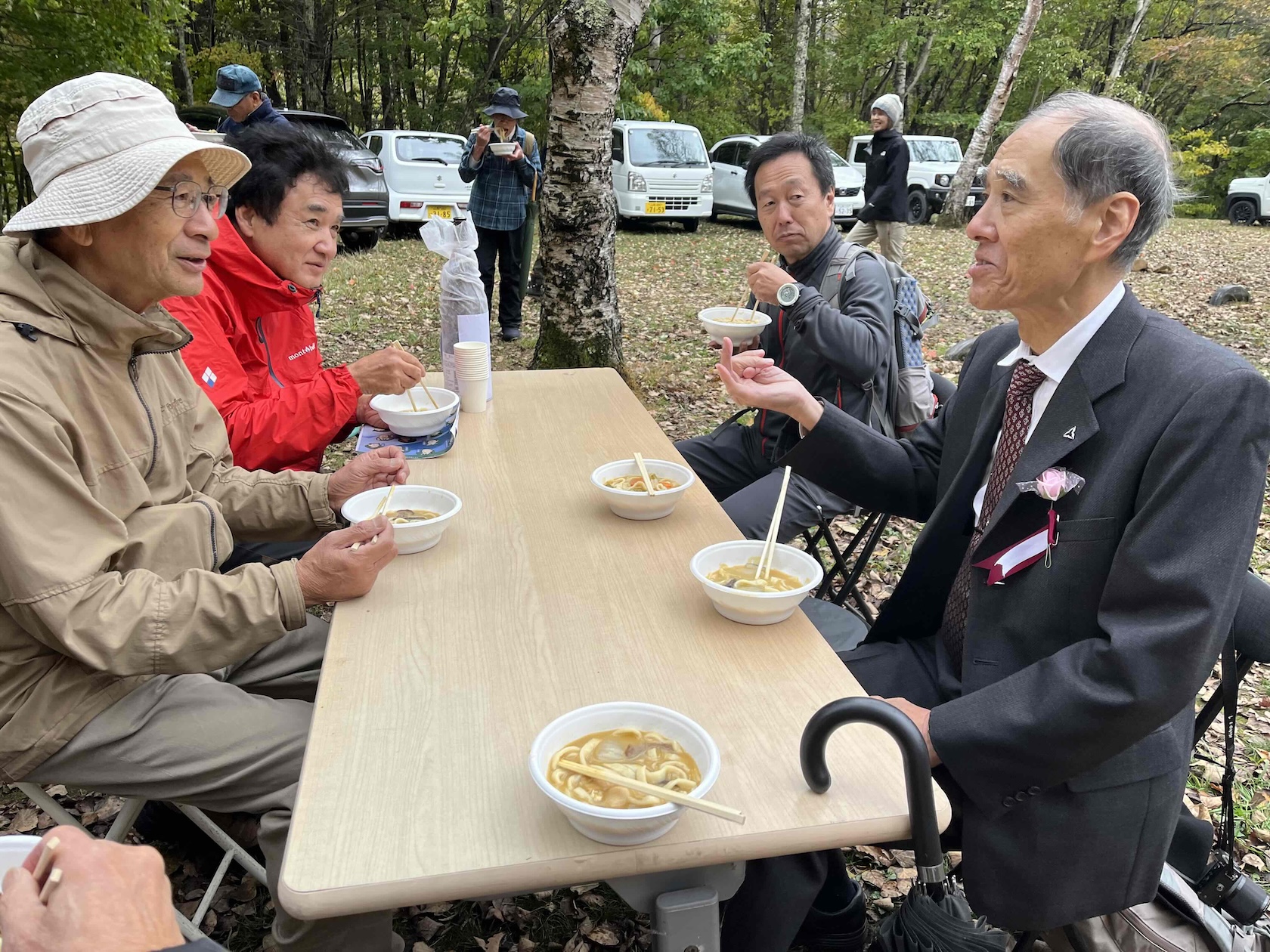 式典終了後は、増富ラジウム峡観光協会主催による恒例の「ほうとう食う会」が金山平キャンプ場で開かれ、温かいほうとうを囲みながら参加者同士の親睦が深まりました。