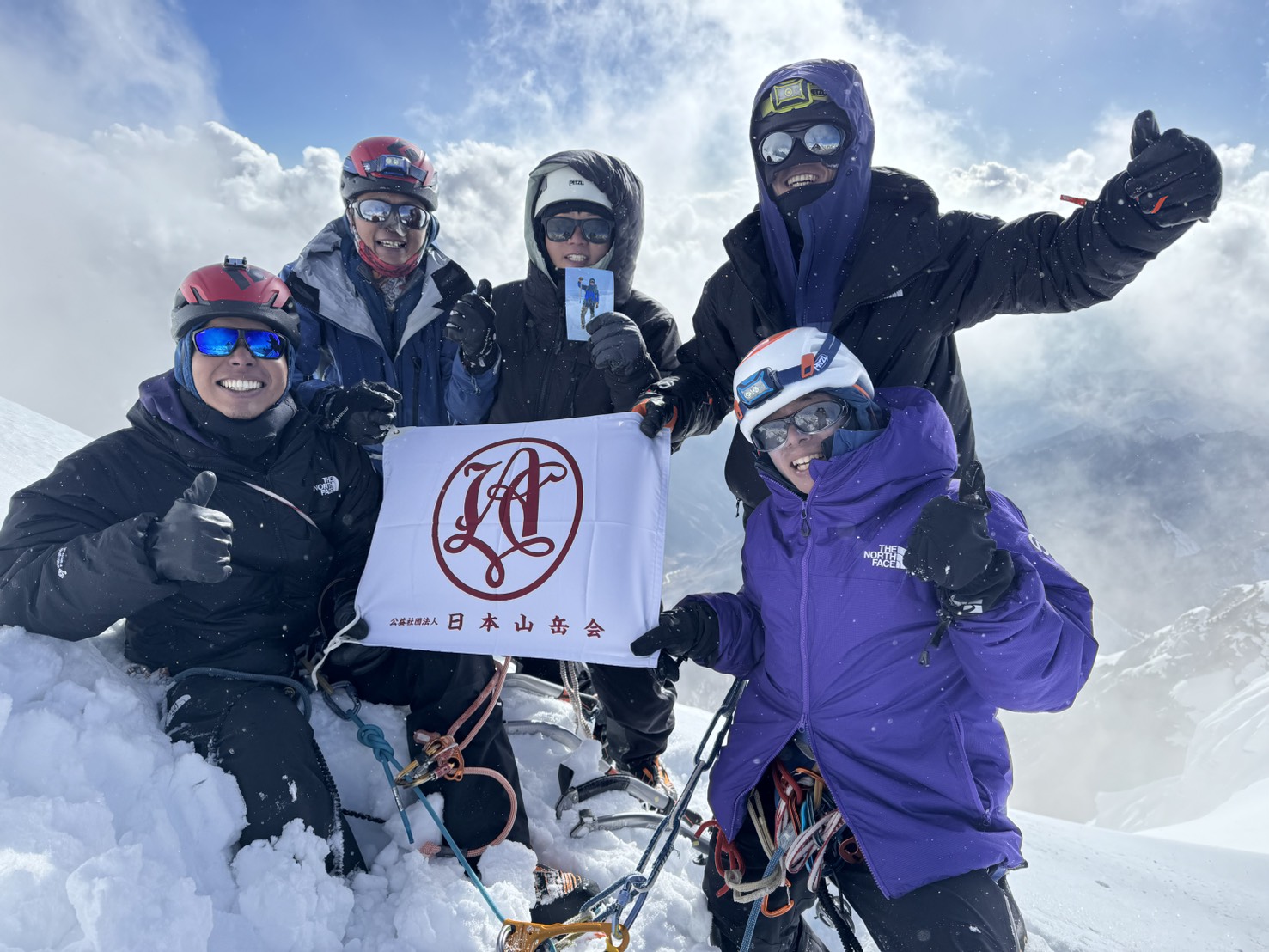 ところどころ氷雪壁もあり、登頂日は20時間行動になりましたが、全員無事登頂。