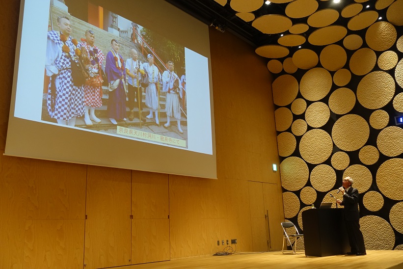 講演1では「山の名前を考える-修験道との係わりについて-」と題して、日本山岳修験学会及び日本山岳会の松本敏夫氏が修験道と山の名前との関係について報告した。また、雲取山や飛龍山、御 嶽山(みたけさん・おんたけさん)の名前の由来の解説があり、最後に埼玉県毛呂山町にある牛頭山(または午頭山)の山名の混乱に関する紹介があった。地元で呼ばれている「ごんずうさん」または「ごずさん」の山名は、牛頭山の表記が「牛」と「午」が混在している現状は毛呂山町でも理解している。山名の根拠となる古文書等の発見が待たれるところですが、身近な山の名前に興味を持つきっかけとなる事が期待される。