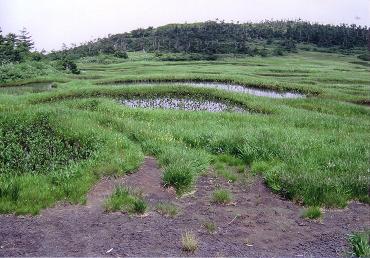 笊森山から一気に下ると、池塘が点在する千沼ヶ原に着く。