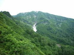 頂上は新潟県側から登ってきた人たちもあり、登山者で溢れていた。山頂からは360度の展望が得られたが、西北方向にくっきりと聳える守門岳と南南西方向遥か彼方に望む雪をかぶった越後三山が特に印象的であった。
