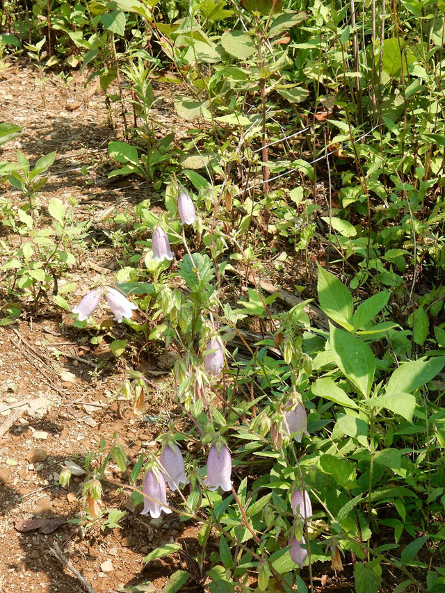 道をさがしながらの藪漕ぎなので、だんだん先頭の足が遅くなって行く。二番手を登っていた喜多が先頭を交代する。棘のある草がよく繁っている。タラや大きく伸びたウドも目につく。照りつける太陽にじりじり灼かれながらの登りはなかなかはかどらない。1時間ほど登った所で休憩する。先頭の筆者は他の5人から約10m離れていたが、4-5mも離れるともう姿が見えなくなる様な藪の中、後続がなかなか動かないので草むらの中で直射日光を避けて待つ。