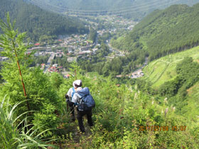 下山コースをどうするか話し合った結果、登ってきた仏沢尾根を下ることになった。13時50分下山開始。15時40分登山口。登山道は広い尾根のもっとも高い所にジグザグについていることが確かめられた。登りでは少し登った所で道を失い、樹林帯に近い所をほぼ直登していたのだった。