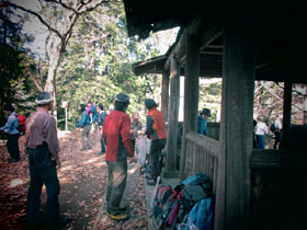 12:10 山頂付近で、A・B両班合流、昼食の場所取りは一昨年と同位置を確保。