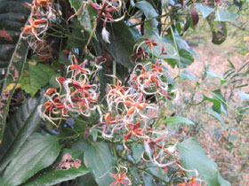 **カミヤツデ : 中国、台湾原産の常緑低木。茎の髄から通草紙(つうそうし)という造花や書画で使う紙の一種を