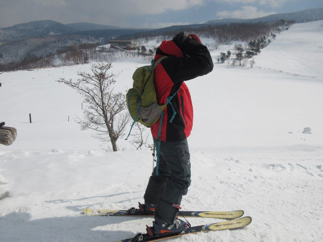 リフト乗り場近くのレストランで昼食後13時に出発、リフト3基を乗り継ぎ約30分で北望台へ到着。 駐車場の車の数に比べるとゲレンデはかなり空いていて、スキー持参の大西さんはゲレンデスキーで乗り放題リフト券をフル活用。