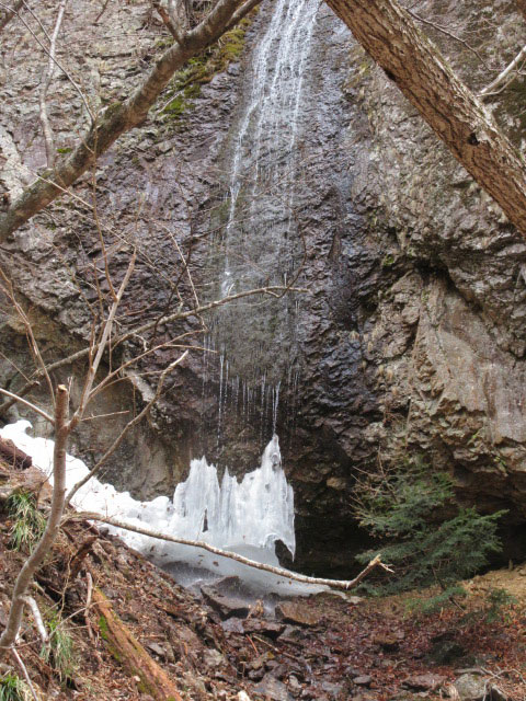 その後も猿を見かけたが群れではなく、いずれも単独であった。日陰には少し雪が残っていたが、このあと道にはほとんど雪がなかった。地図には川沿いに温泉マークが4箇所ばかり記載されている。確かにその辺りを通ると硫黄の匂いが微かに漂っていた。
